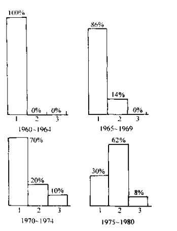 隨著橋梁技術(shù)的發(fā)展,橋梁支座的類型也不斷增加,在20世 紀(jì)60年代之前,幾乎全部橋梁支座都是鋼支座.隨著化學(xué)工業(yè)的 發(fā)展,出現(xiàn)了橡膠支座及使用聚四菰乙烯板的平面滑動支座,因而 從20世紀(jì)60年代初開始,盆式橡膠支座與板式橡膠支座逐漸開 發(fā),并很快成為主要的 撟梁支座型式。20世紀(jì)70 年代開始研制球型支座, 并很」決在彎橋上應(yīng)用。德 國交通局對近幾十年修建 的預(yù)應(yīng)力混凝土橋梁使用 支座的狀況進(jìn)行了調(diào)查, 結(jié)杲表明在1964年以前, 100外的橋梁采用鋼支座, 從1965年以后開始采用 盆式橡膠支座,1970年之 后開始采用球型支座,而 且盆式椽膠支座占全部支 座用量的比例越來越大, 圖1一8表示1960年〜 1980年德國預(yù)應(yīng)力混凝 土橋上使用支座的情況。