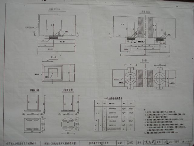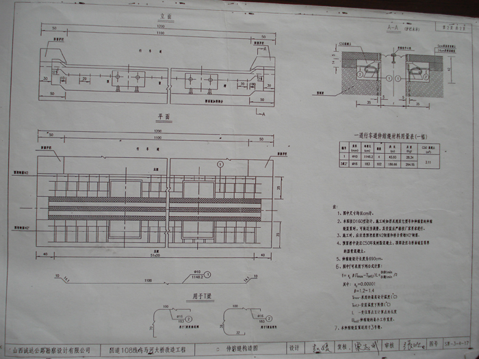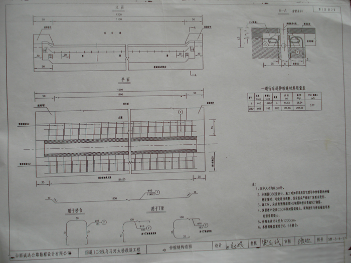 一道行車(chē)道伸縮縫材料用量表(一副)