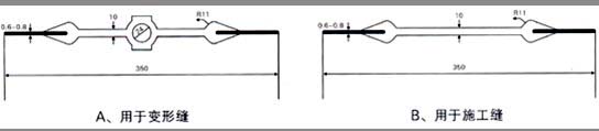 注:1、橡膠與金屬粘合項僅適用于具有鋼邊的止水帶